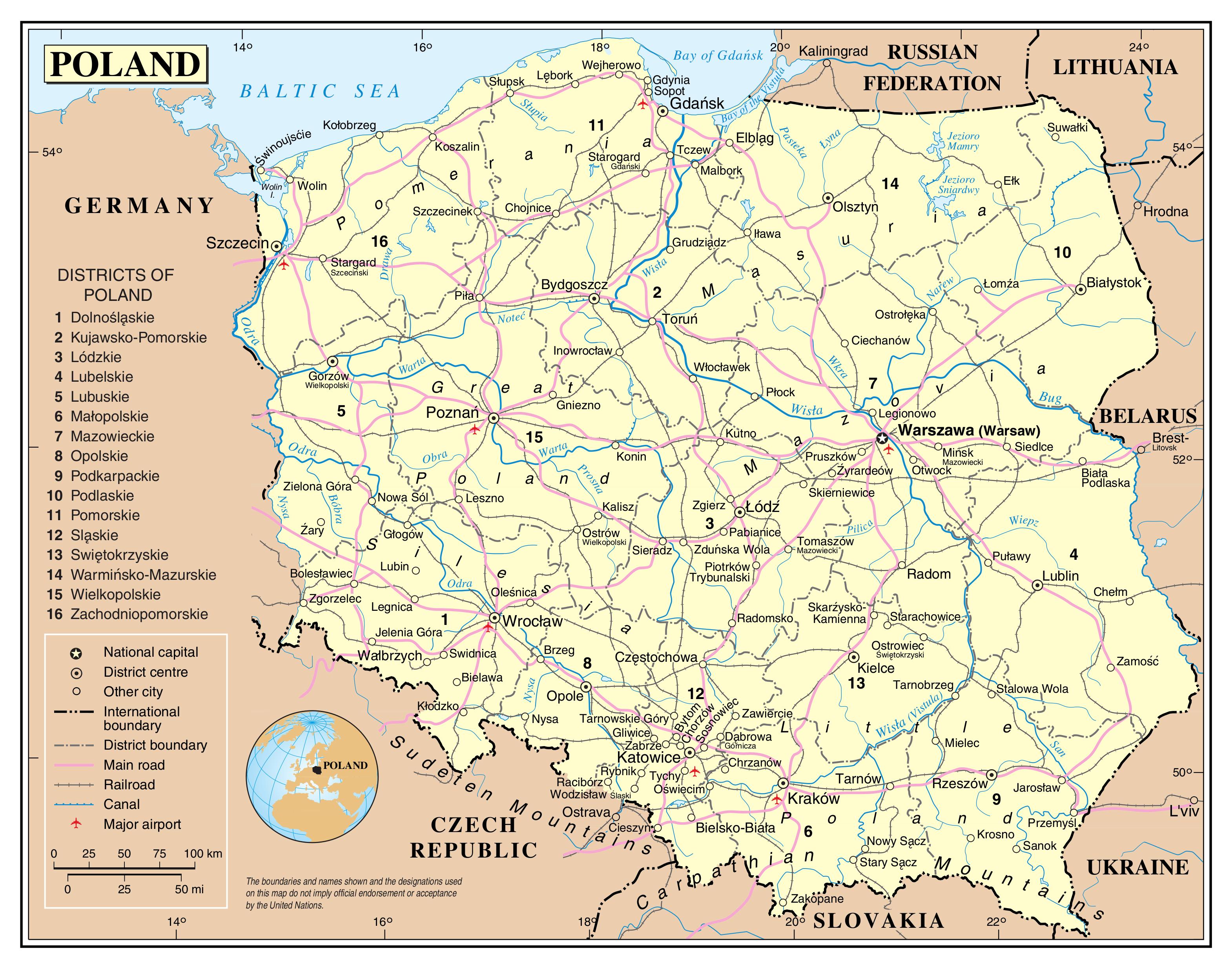 Polónia transportes mapa